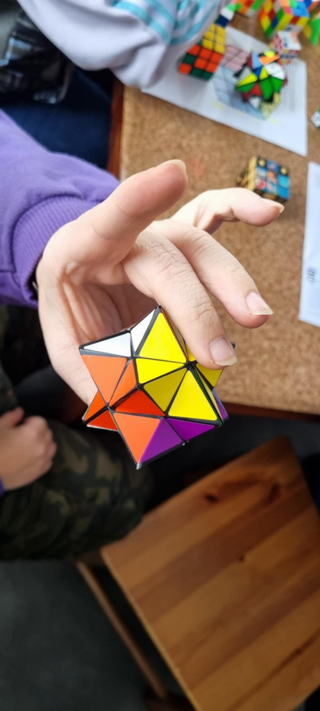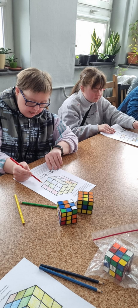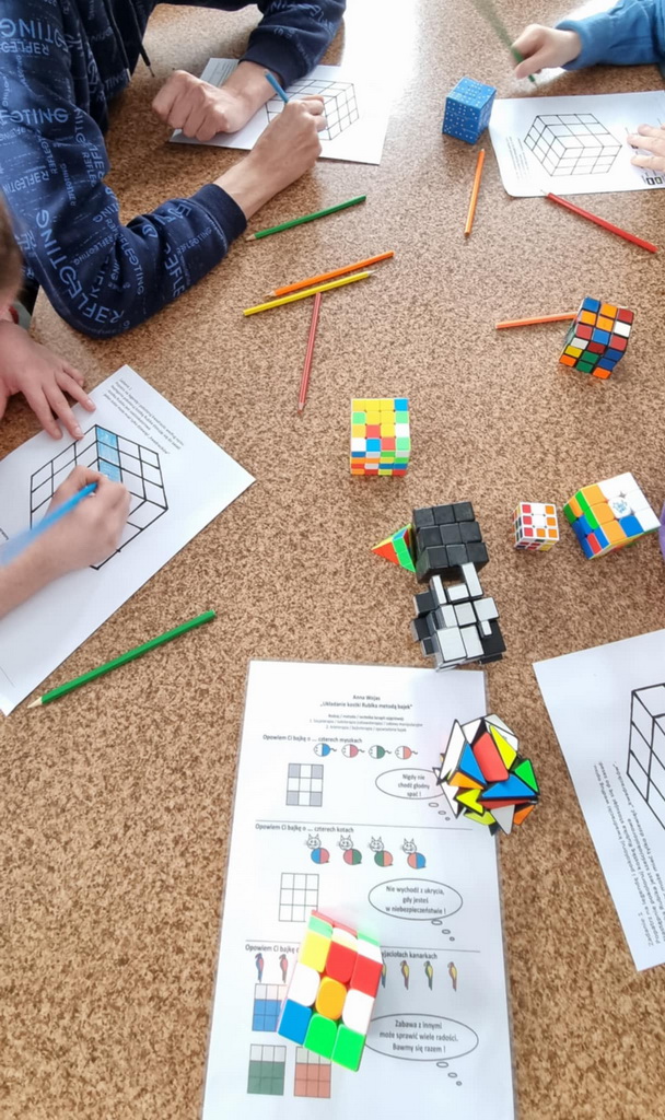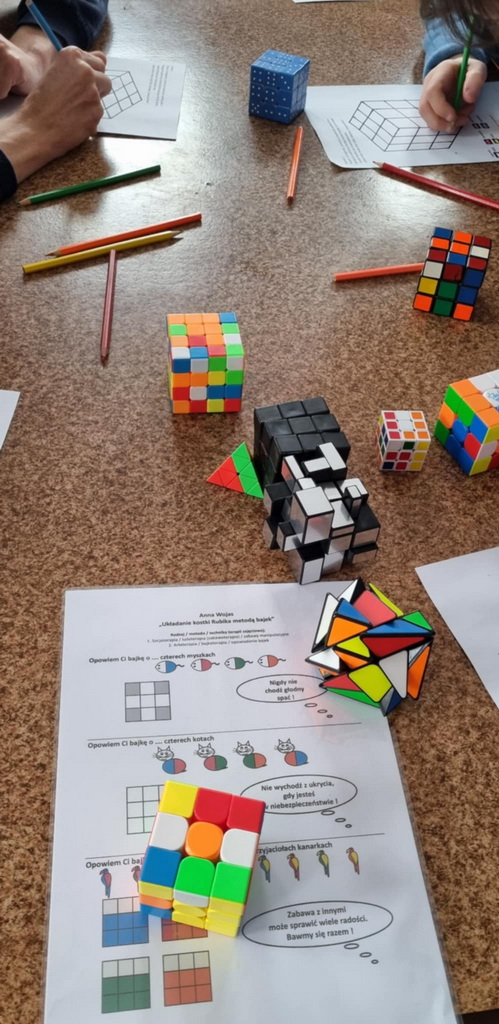Odbyły się warsztaty z układania kostki Rubika metodą bajek. Pani @Anna Wojas wprowadziła nas w fascynujący świat kostki, przybliżyła jej historię, a my słuchaliśmy z zapartym tchem